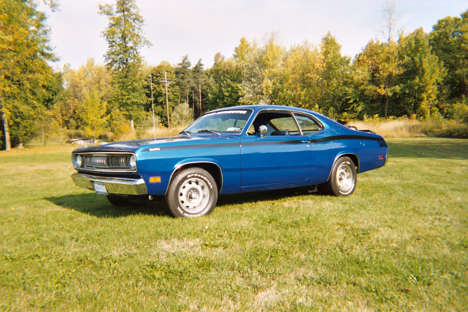 cost was an option.Enter the Plymouth Duster 340. For a $2547 base price, Mother Mopar could give you a 3100 pound street fighter that could hold it's own with the big boys. It starts with a uni-body constructed 2-door sedan that is beautifully sculpted with standard front disc brakes, a heavy-duty 3-speed manual transmission and 3.23:1 rearend gears. Not a bad start, but the heart and soul of the package is a small block V-8 with a 4.04 inch bore and a 3.31 inch stroke which works out to 340 cubic inches.It has a fairly stiff cam, a Carter Thermo-Quad four barrel and 10.3:1 compression. The output is a fairly understated 275 horsepower at 5000 RPM with 340 ft/lbs. of torque at 3200. This base package is plenty respectable, you could expect numbers in the mid to high 14 second range at 94 to 97 miles an hour. That's not bad but you could do better. There was also a heavy-duty 4-speed and a TorqueFlite automatic with high upshifts available. There were also optional 3.55:1 and 3.91:1 Sure Grip gears to quicken things up. The automatic cars were a bit slower but the best numbers were achieved with a 3-speed manual and 3.91 gears. The car pulled 13.50's @ 107 miles an hour! A good 3.55 geared 4-speed car could run 13.9's at around 100 miles an hour. With the stiffer suspension and the Goodyear Polyglas E70-14's on 5 1/2" Rally wheels, this car could hold the road. Add power steering and brakes and you have a total package worthy of the Rapid Transit System with honors. Many a Big-inch Musclecar has gotton a really good look at the back end of a 340 Duster. There was no deception, it had bold stripes and 340 right on the rear quarter panel. The fact of the matter is simple, the Duster 340 was an exceptional package that was designed to slay giants and it did. You could get faster cars but it was a hard car to beat for the money and in a world where "Bang for the Buck" is king, the Duster 340 is pure royalty. - Dan Davis. |